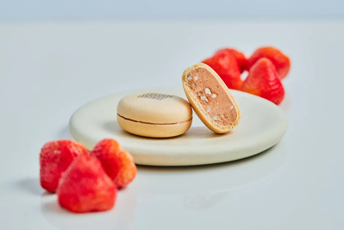 「団らんモナカ」はカカオハナレの看板商品として、多くの方々に親しまれている和スイーツです。11月1日から販売が開始されるあまおう苺味は、サクサクのモナカ皮に軽やかなチョコレートクリームを贅沢に絞った一品で、甘ずっぱく華やかなあまおうの風味が楽しめます。