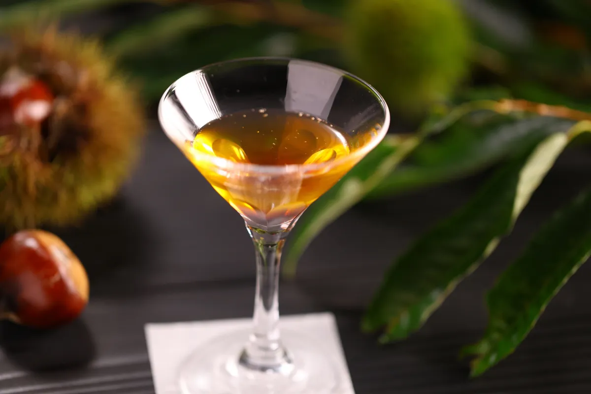 お献立の始まりを告げるのは、海石榴自家製の食前酒「茜空」です。この酒は、夕暮れ時に染まる空をイメージして作られた一杯で、アプリコットリキュールの甘み、グランマニエの芳醇な香り、そして爽やかなソーダとレモンサワーのバランスが絶妙です。底に沈むカシスリキュールは、味わうごとに変化を楽しませてくれ、秋の風景を味わう非日常的な体験を提供します。この特別な一杯は、食事の幕開けとして、訪れるお客様に華やかな印象を与えてくれます。