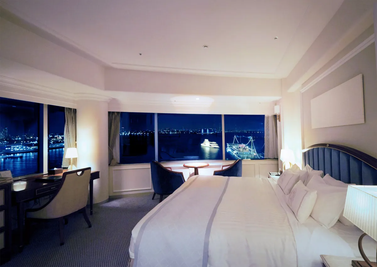 客室は、タワー館のグランドクラブフロアやスーペリアフロアから選べ、海の絶景が望める仕様です。タワー館スーペリアフロアのベイフロントコーナーダブルは窓から美しい横浜の景観が見え、贅沢なひと時を提供します。チェックインは14:00、チェックアウトは11:00となっており、余裕を持った滞在が可能です。