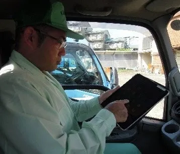 WOOMSは、インターネットに接続されたソフトウェアを利用したごみ収集サポートシステムです。各収集車にGPS機能付きのタブレット端末を設置し、これを使って様々なデータを管理します。このシステムにより、収集ルートの設定や収集状況のリアルタイム把握が可能になります。さらに、収集職員が撮影した画像を位置情報とリンクさせて共有することで、収集業務の総合的な「見える化」を実現します。