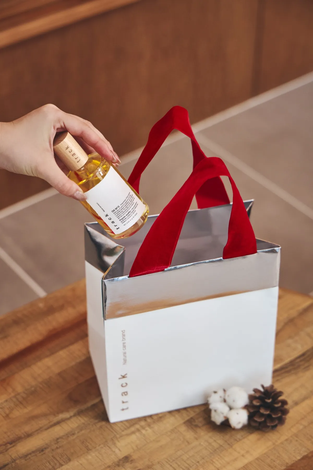 今年のクリスマスは、trackから新しい3つの限定アイテムが登場します。ひと塗りで贅沢感を与えてくれる「グリッターオイル ホワイト」は、パーティーなどの特別な日にも、普段使いにも最適です。また、人気の「track オイル No.3」は、シルバーの煌びやかなパッケージにリニューアルされています。ジンジャーマンやステッキのデザインが施された特別感あふれる製品です。