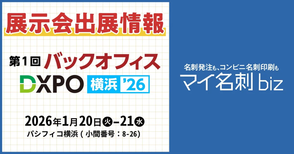 2026年1月20日と21日の両日にわたり、横浜のパシフィコ横浜にて授業展バックオフィスDXPOが開催されます。ここで、株式会社サムライソードが展開する法人向け名刺発注DXサービス『マイ名刺 biz』が出展することが決定しました。この展示会では、名刺発注の煩雑な業務を省力化する最新の機能を、実際に体験いただける機会となります。