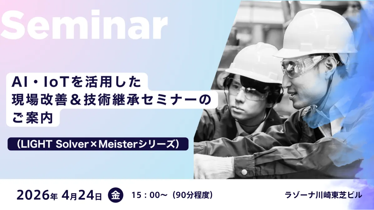 現状の製造業や作業現場においては、作業効率の向上や安全確保、さらには熟練した技術者からのノウハウの継承が求められています。このような課題に対する解決策を模索するために、株式会社LIGHTzと株式会社東芝は共同で「AI・IoTを活用した現場改善&技術継承セミナー」を開催します。このセミナーでは、実際にAIやIoT技術を使った改善手法を体験することができます。