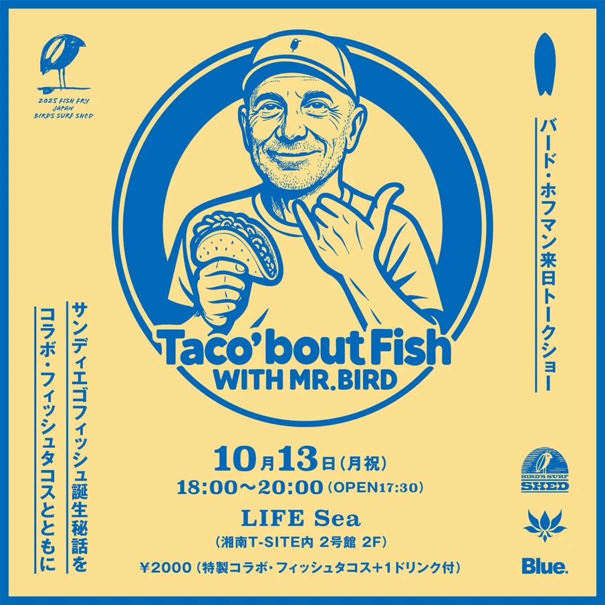 訪れた方々は、特製のフィッシュタコスとドリンクを楽しみながら、サーフィンにまつわる貴重な秘話を聞くことができます。トークの合間には、バード氏がカリフォルニアから持参する貴重なフィッシュボードが展示され、その一部は購入も可能です。