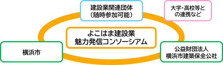 今回のコンソーシアムは、42023年11月10日に設立され、さまざまな活動を通じて建設業の魅力を発信していくことを目指しています。コンソーシアムの名称は「よこはま建設業魅力発信コンソーシアム」で、以下の団体が参加しています:
