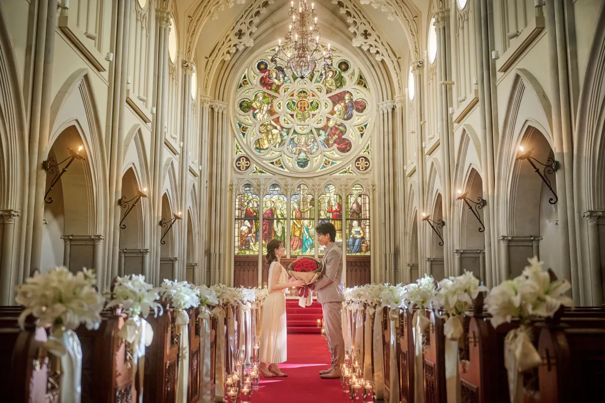憧れのチャペルを貸し切ってのプロポーズが実現するプランです。ステンドグラスが美しい空間や、自然光が差し込む開放的なサンクチュアリーコートなど、心に残る舞台でプロポーズが行われます。ディナーを堪能した後、チャペルで贅沢に時間を過ごし、プロポーズ成功後のアニバーサリーフォトも用意されており、思い出を美しく切り取ることができます。