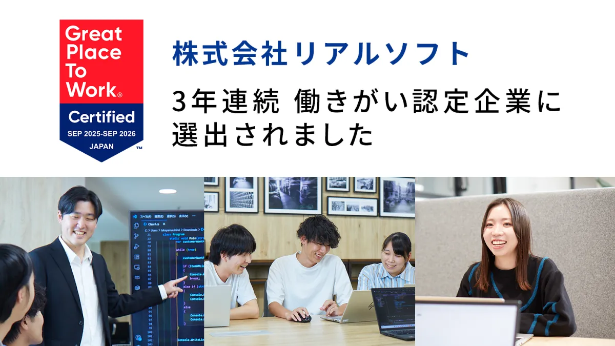 「働きがいのある会社」認定は、社員へのアンケート結果を基にしており、企業文化の優れた部分が評価されるものです。この認定を受けることで、リアルソフトは今後もさらに多くの企業や個人にとって魅力的な職場であり続けることが期待されます。