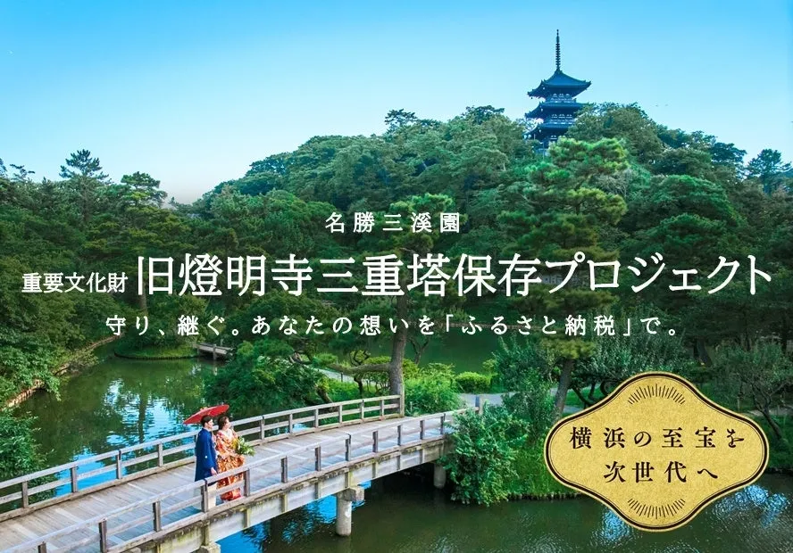 横浜市内に位置する美しい日本庭園、三溪園のシンボルである「旧燈明寺三重塔」の保存プロジェクトが、いよいよスタートします。このプロジェクトは、文化財を次世代へと受け継ぐべく、地域の皆様のご支援を必要とする重要な取り組みです。2023年10月3日より、クラウドファンディング型のふるさと納税が始まります。