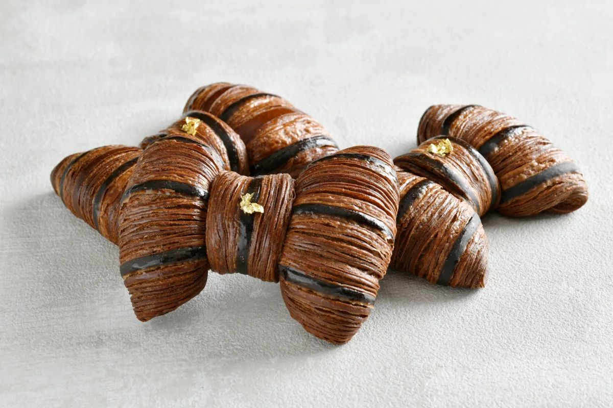 『ショコラリボンデニッシュ』は、その名の通り美しいリボンの形をしており、見た目の可愛さだけでなく、味わいにもこだわっています。このデニッシュは、外側はサクサク、中はもちもちの絶妙な食感を実現するために、クロワッサン生地を幾重にも重ねて焼き上げられています。そして、風味豊かで甘さ控えめなチョコレートガナッシュがたっぷりと詰め込まれており、バターの香ばしさとチョコレートの絶妙なハーモニーが楽しめるのです。