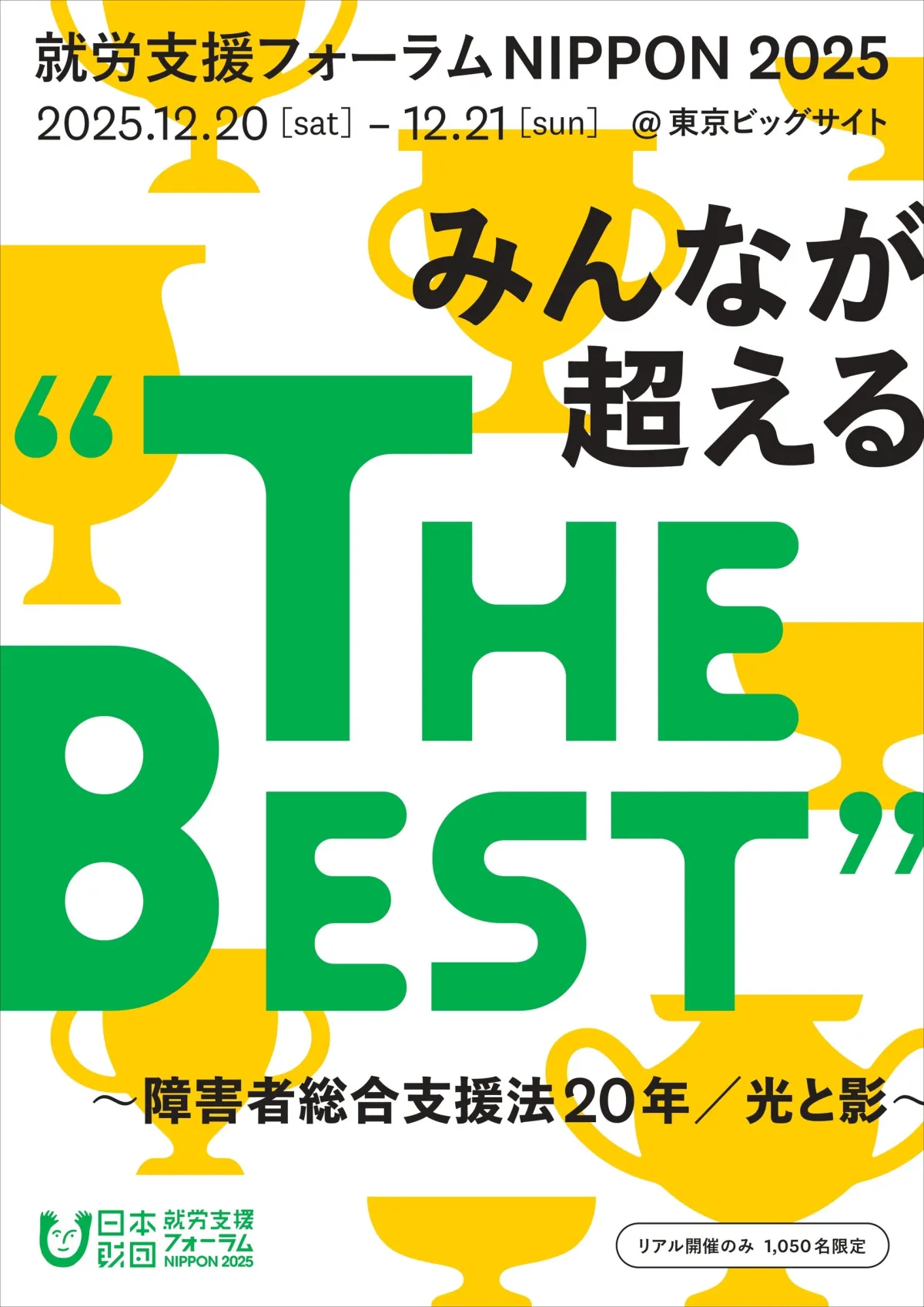 2025年の12月20日と21日、東京ビッグサイトにて「就労支援フォーラム NIPPON 2025」が開催されます。このフォーラムは、障がいのある方たちを支援するための集まりであり、全国から1050名以上の関係者が一堂に会して様々なテーマについて議論します。特に今回は、障害者総合支援法が施行してから20年を迎える節目となり、「みんなが超える“THE BEST”~障害者総合支援法20年/光と影~」というテーマが掲げられています。