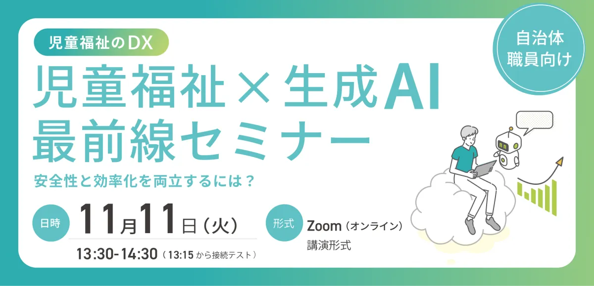 株式会社AiCANが主催する「児童福祉×生成AI最前線セミナー」は、2025年11月11日12:00から13:00までZoomで開催されます。このウェビナーは、自治体職員のために特別に用意されたもので、児童福祉の現場で直面する課題にAIをどのように活用できるかを考える機会です。