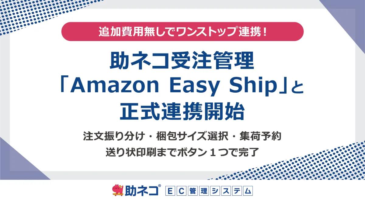 株式会社アクアリーフが提供するネットショップ向け業務管理システム「助ネコ®EC管理システム」が、2025年9月25日よりAmazonの配送サービス「Amazon Easy Ship」との正式な連携を実施することが発表されました。この連携は、特にEC運営を行う事業者にとって、業務の効率化やコスト削減に大きく貢献するものと期待されています。