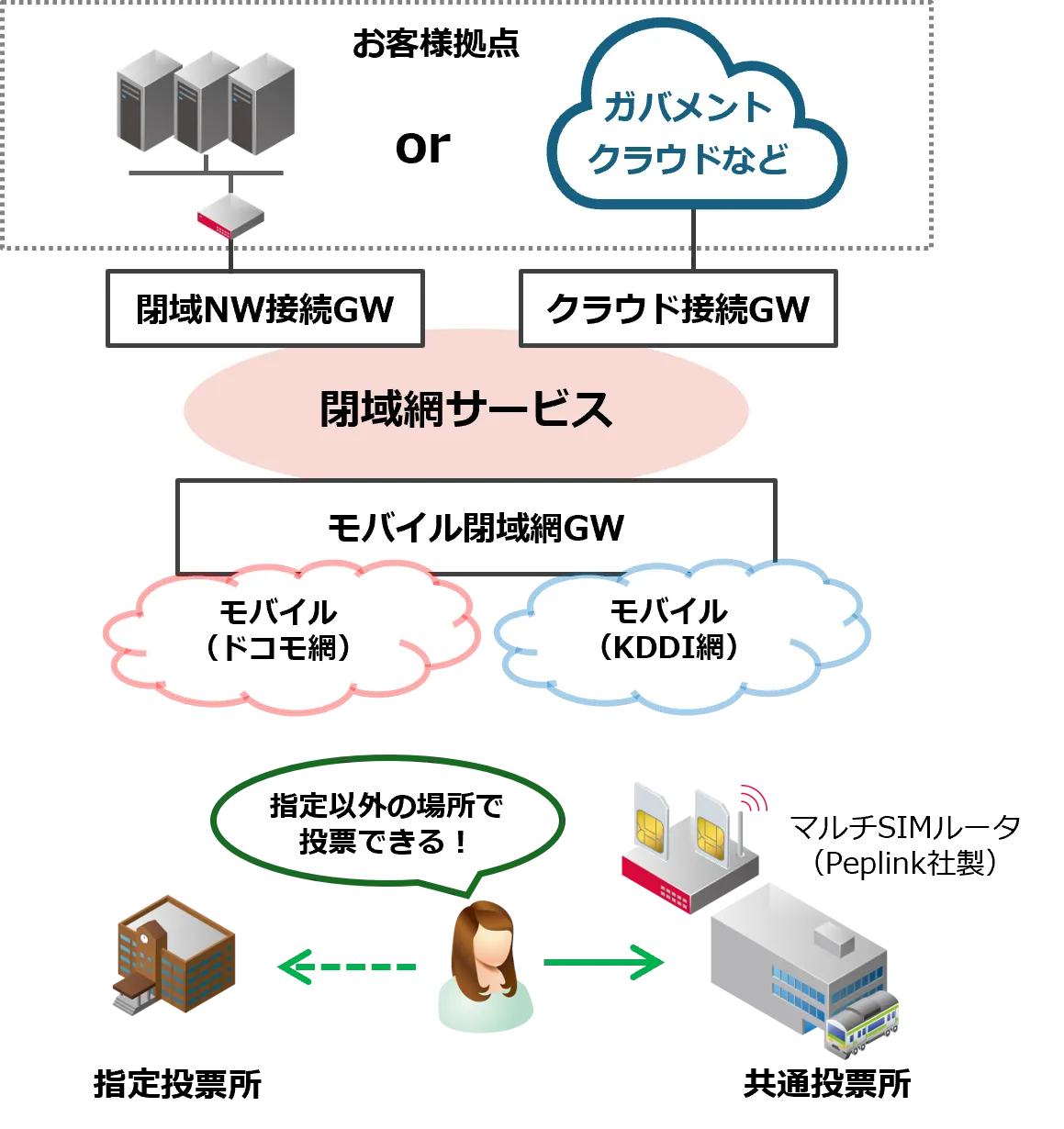 共通投票所や民間施設における期日前投票所の設置は、有権者の利便性や投票率の向上を図る重要な施策です。しかし、投票所をセキュアで信頼性のあるネットワークで結ぶためには高コストや長い導入期間などの課題があります。このような点を踏まえ、IIJグループでは本実証実験を通じて、柔軟で低コストな投票所ネットワークの構築を実証しました。