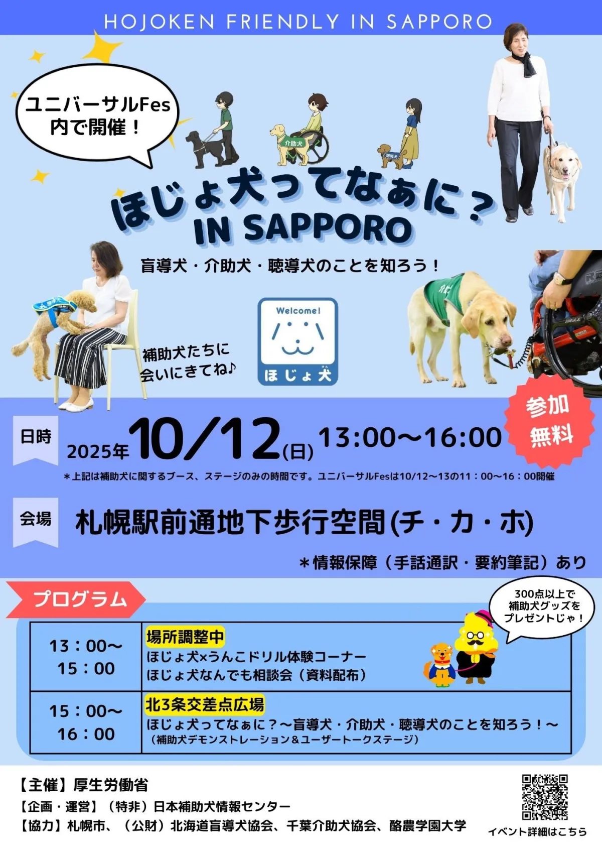 2025年10月12日(日)、札幌駅前通地下歩行空間【チ・カ・ホ】にて、身体障害者補助犬に焦点を当てた啓発イベント「ほじょ犬ってなぁに?」が開催されます。このイベントは、特定非営利活動法人日本補助犬情報センターの企画によるもので、厚生労働省と札幌市の協力の下、進められています。