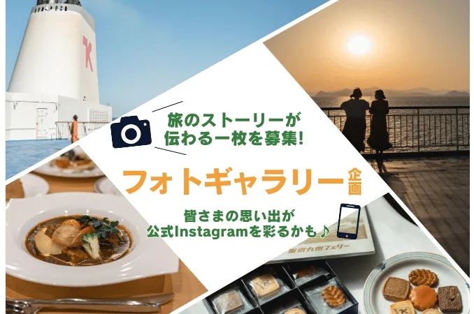 東京九州フェリーでは、船上や旅先での思い出を切り取った素敵な写真を募集中です。この企画の目的は、旅の魅力を一緒にシェアし、皆さんのお気に入りの瞬間をInstagramで紹介すること。特に、昨年や今年、お出かけした際に体験した記憶に残る場面を応募してほしいと思っています。