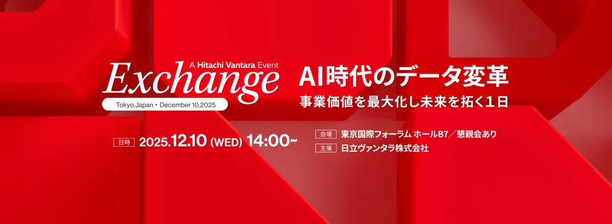 日立ヴァンタラ株式会社は、2025年12月10日(水)、日本で初めてとなるカンファレンス「Hitachi Vantara Exchange Japan 2025」を開催します。このイベントは「AI時代のデータ変革~事業価値を最大化し未来を拓く~」をテーマに、AIやデータ活用の重要性について深掘りすることを目的としています。