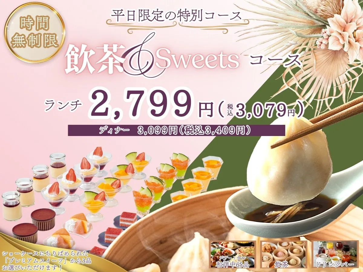 さらには、嬉しいことにドリンクバーも付きで、時間無制限で楽しむことができます。好きなだけ飲み、食べることができるのは、グループや家族で訪れる際にも安心です。平日を特別な日に変えて、ぜひ「飲茶&スイーツコース」をご体験ください。