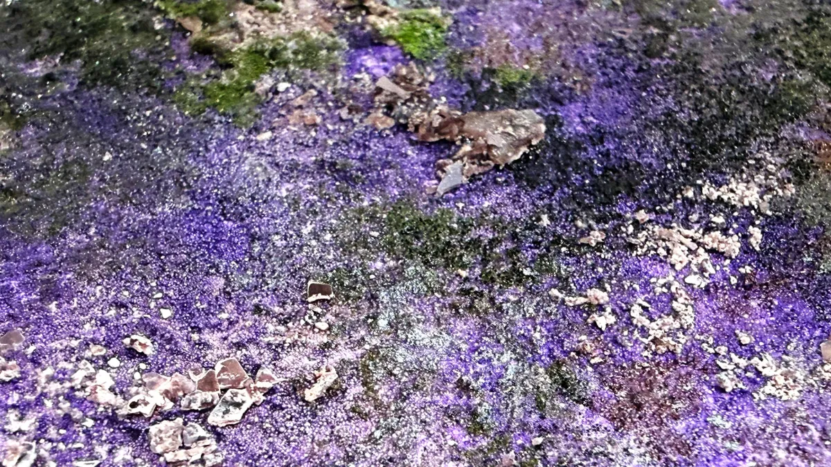 作品は、CO₂由来のポリマーに微細粒子や鉱物を組み合わせることで、光の入射角や湿度、温度の変化に応じて異なる反射を見せるようにデザインされています。これにより、視覚的な「呼吸」を表現することが可能になり、観覧者には作品が持つ動的な特性が印象づけられます。