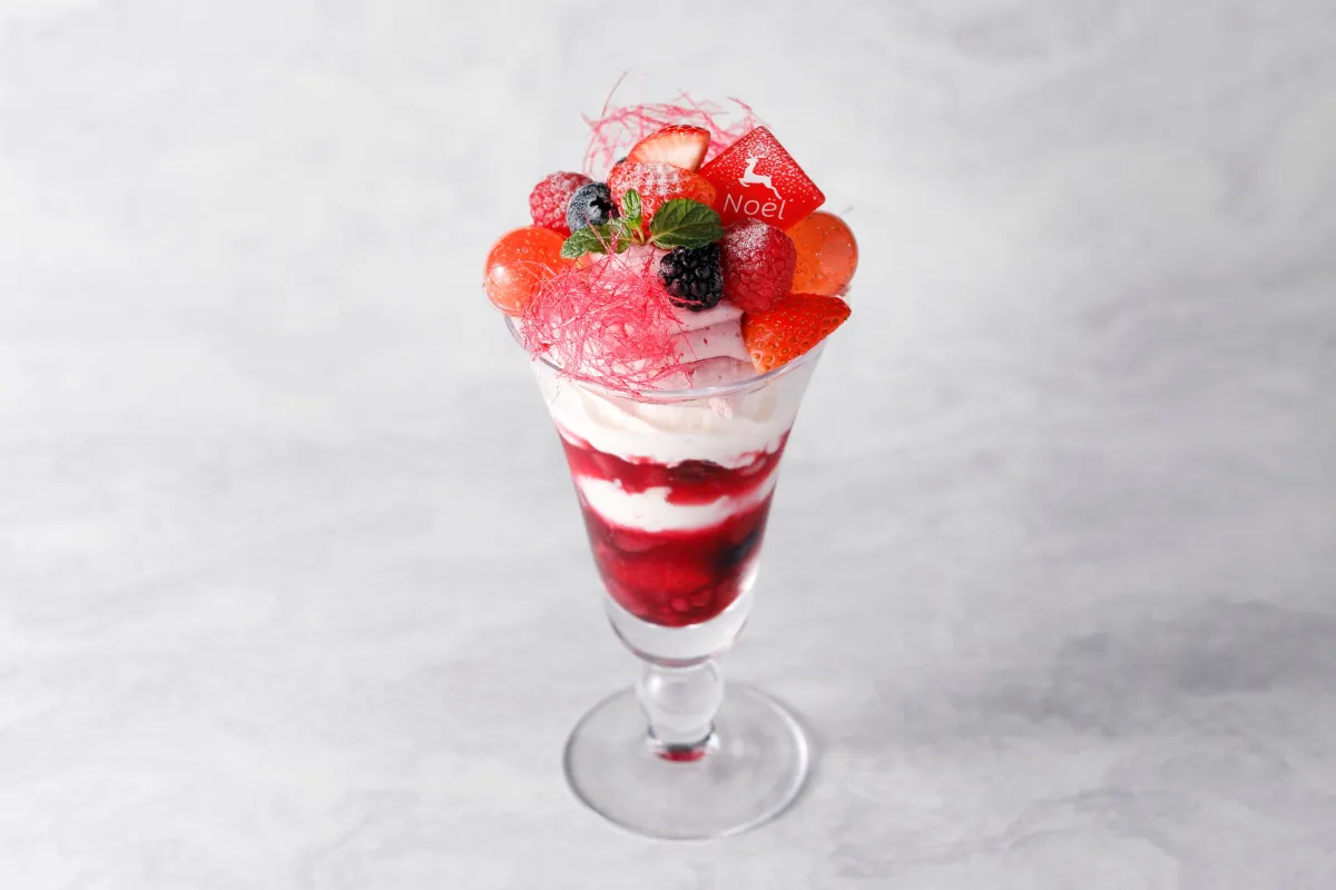 この季節の目玉である「クリスマスベリーパフェ」は、数種のベリーが贅沢に盛り付けられた一品。爽やかなヨーグルトアイスやラズベリーソルベが絶妙なバランスで組み合わさり、クランベリーゼリーが加わることで、見た目にも美しく、心躍る味わいが広がります。お値段は2,750円。期間中、贅沢なひとときを楽しむのにぴったりです。
