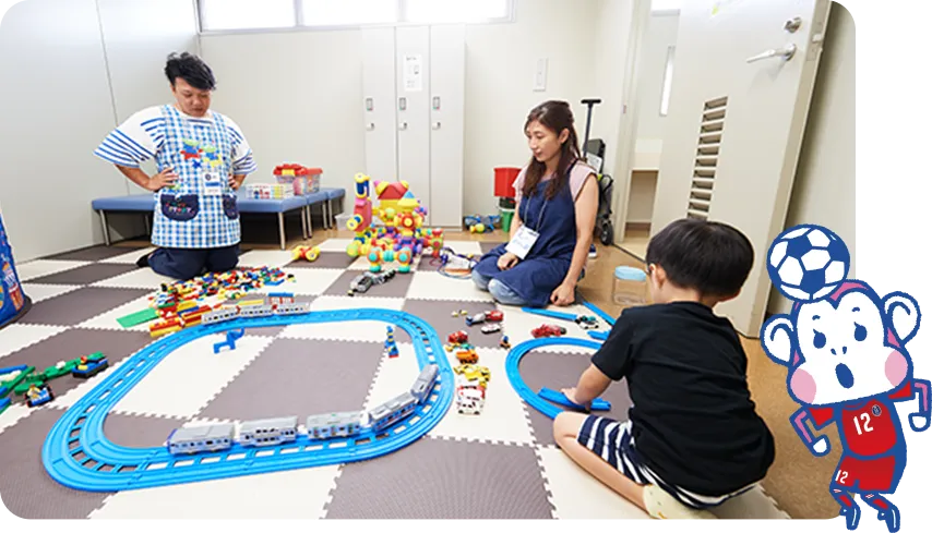 具体的な実施内容ですが、ノジマステラ神奈川相模原の試合において、託児施設は満3歳から就学前のお子様を対象にしています。利用開始は試合の30分前から、試合終了後30分間まで。親は安心して試合に集中できる一方で、子供たちも安全で楽しい時間を過ごせます。