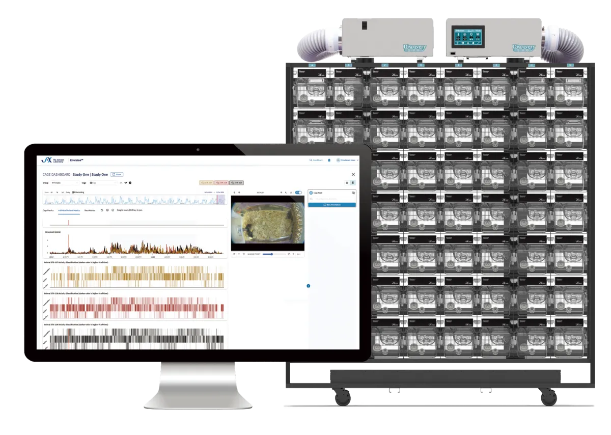 この新システムは、米国Allentown社が供給する「Discovery™」というIndividual Ventilation Cabinet(IVC)と、ジャクソン研究所の「Envision™」ソフトウェアを統合しています。具体的には、高感度カメラが常時動物を撮影し、その映像データをAIが解析します。運動量や摂食、飲水、呼吸数、さらには睡眠パターンやてんかん発作の兆候などが詳細にモニタリングされることで、ことさらに非侵襲的かつ自然な行動を妨げない形での観察が可能です。また、収集されたデータはクラウドに保存され、効率的にチーム間で共有や解析が行えるため、多拠点での研究にも対応しています。