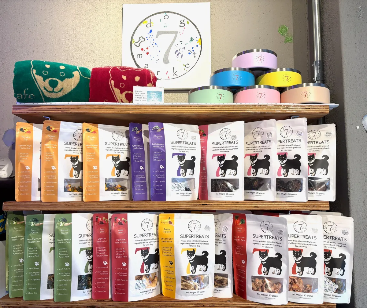 横浜の「7artscafe」だけでなく、全国各地のペットライフスタイルショップでも、7dogmarketの製品が手に入ります。愛犬と一緒に楽しめるプライベートヴィラ「ルクス箱根湯本」や、米国のセレクトショップ「DIGGDY DOG」でも取り扱われており、横浜から世界へと展開が広がっています。このブランドを通じて、より多くの愛犬家が食からのウェルビーイングを実現できることを目指しています。